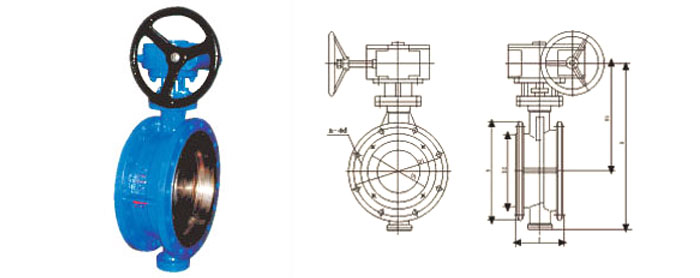 法(fa)蘭式蝸輪(lún)傳動硬密(mì)封蝶閥(D341H-10 16)主(zhu)要連接尺(chǐ)寸